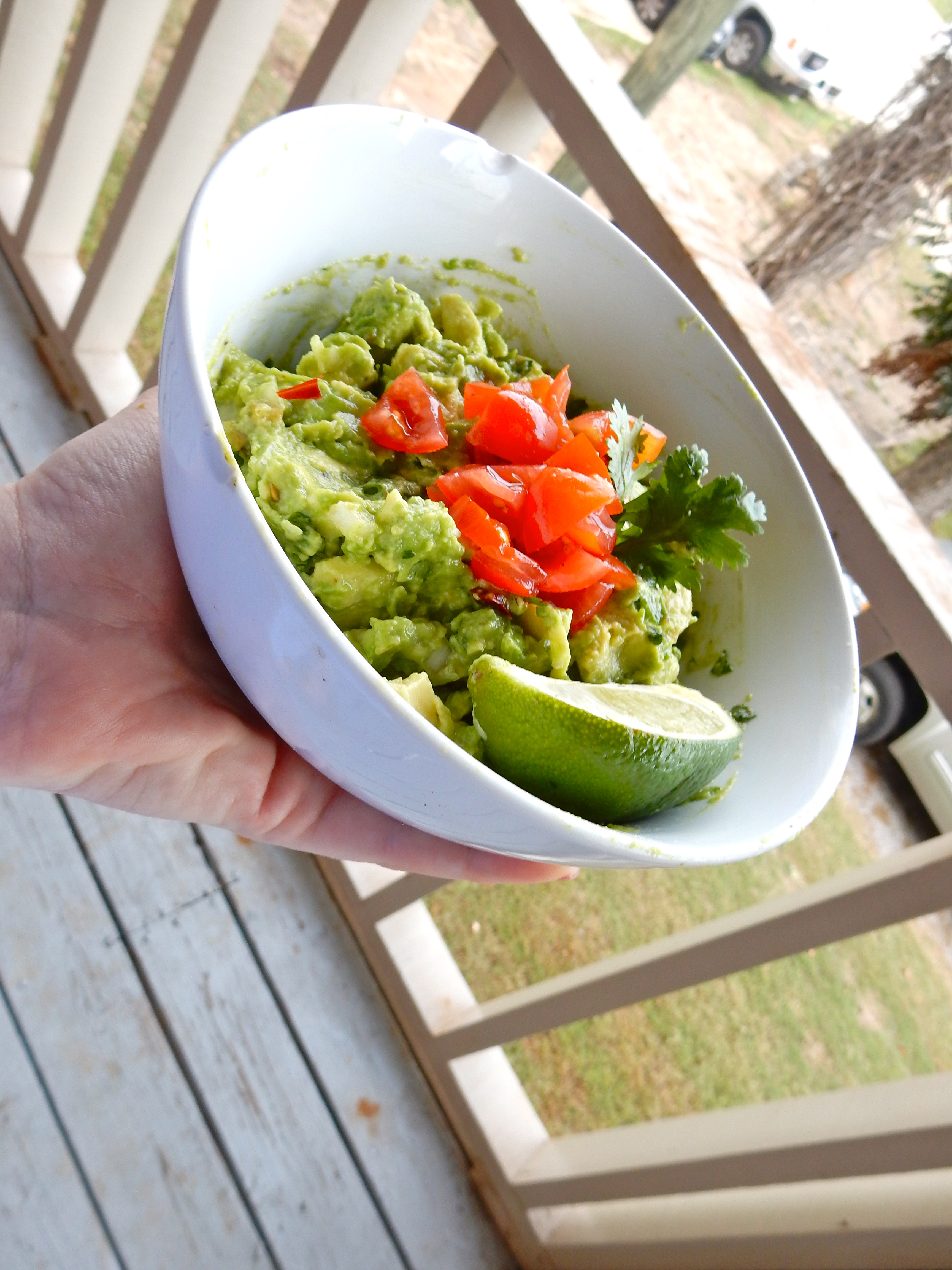 Yes, the basics of guacamole are avocado, onion, lime, salt and pepper. Lots of people put tomato in their guac, and I do too- about 75% of the time. It gives it a nice color but is not a necessity. In my opinion, you can barely even taste them. Another thing that may or may not be in your typical guac is jalapeño. When I’m home with my family, we constantly have jalapeños in the garden (hot peppers do well in Florida- not incredibly surprising) and I do like to use fresh jalapeños, but it can be overpowering to some. Especially when you have a particularly hot jalapeño.