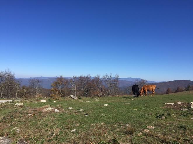 On a hike up Bearwallow Mountain, my brother, my dog, and I hiked up a windy two miles before reaching the summit. I had expected a picturesque lookout or maybe a clearing in the trees, but I did NOT expect to find an entire pasture of cattle.