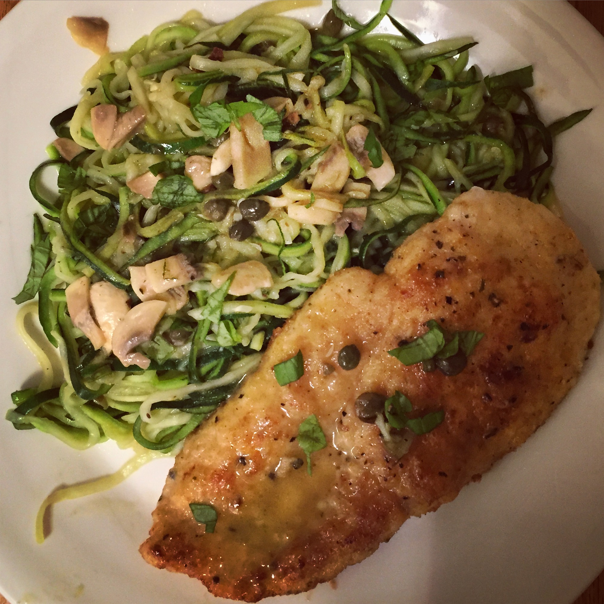 Lemony, flavorful chicken on top of delicately cooked spiralized zucchini may just be your new weeknight meal.
