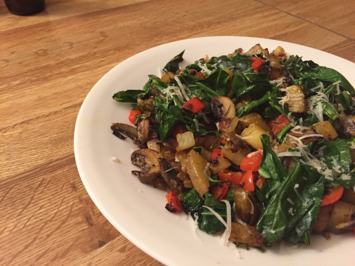 As always, feel free to play around with this. Omit or add roughly anything (including meat). Hashs are kind of meant to be a hodgepodge of different stuff. But don’t forget those collard greens! I promise they are much better than the ones you had in the middle school cafeteria. Promise.